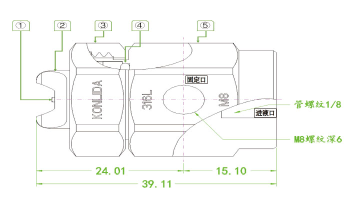 注:1. 進(jìn)氣口在固定口背面;2. 進(jìn)氣口螺紋為管螺紋1/8