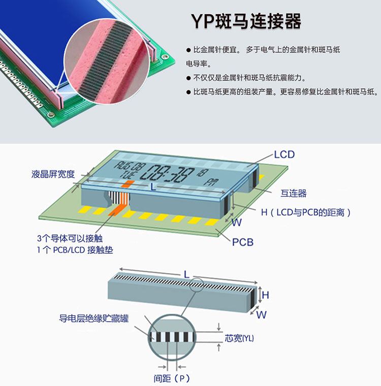 游戲機(jī)、電話、電子手表、計(jì)算器、儀器儀表等產(chǎn)品的液晶顯示器與線路板的連接。
